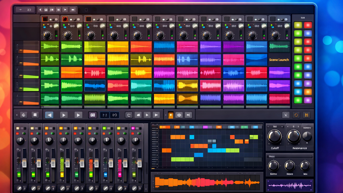 - Scene launching: Launch an entire row of clips with one trigger, enabling instant section changes.